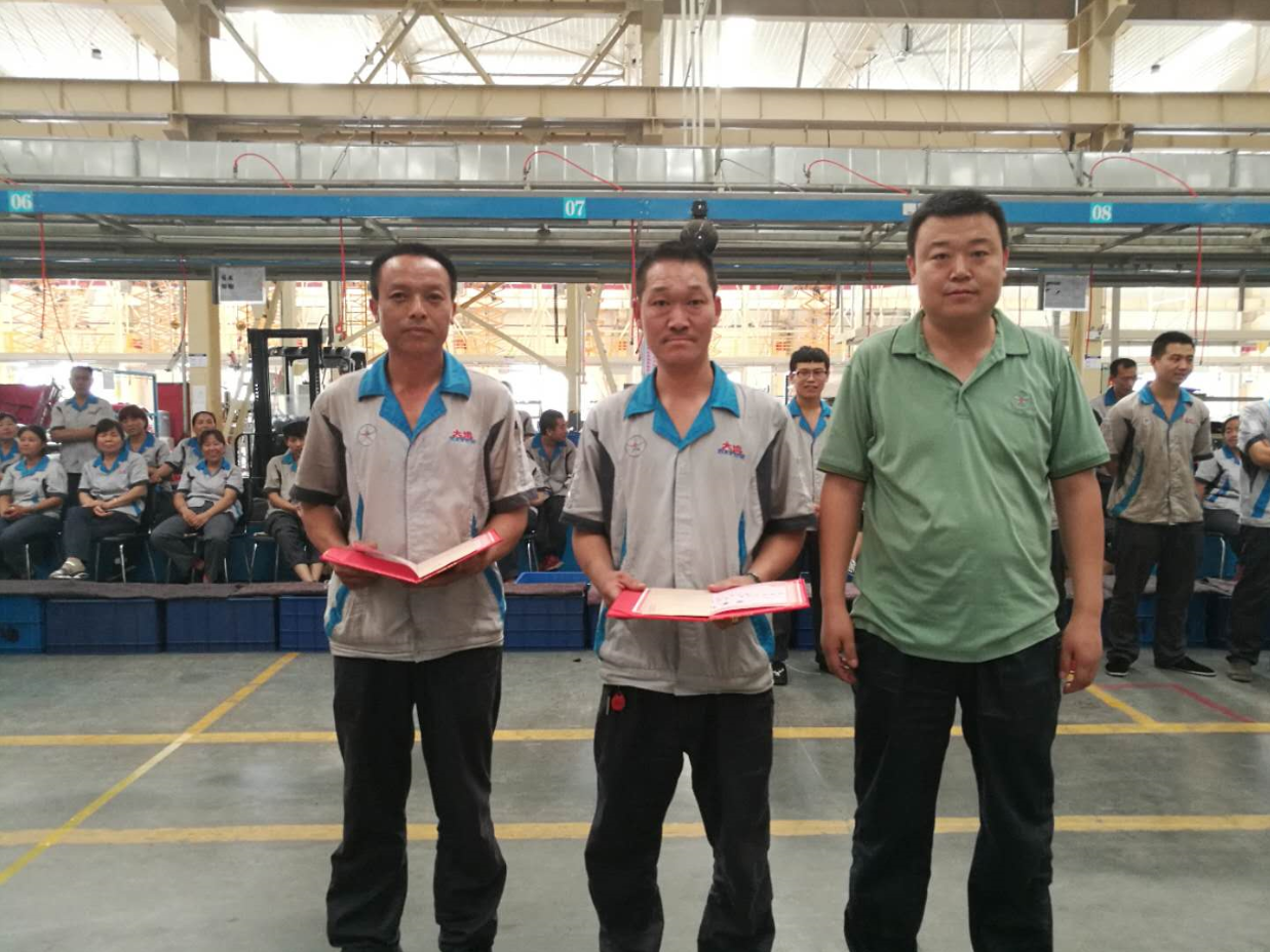 為豐富員工的業(yè)余生活,充分調(diào)動員工的積極性和創(chuàng)造性,并在公司內(nèi)部營造“比、學(xué)、趕、幫、超”的良好氛圍,總裝處率先垂范,積極組織舉辦運城大運機(jī)車有限公司首屆拆裝車技能比武大賽。比賽一共分為四個組,總裝處A、B兩條生產(chǎn)線各出兩個組,每組9個人。比賽分為拆車、裝車兩個部分,每完成一個部分,全組成員列隊站好,由專業(yè)裁判組進(jìn)行檢驗打分。